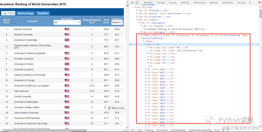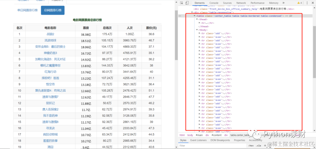 如果查看一下网页的HTML结构(Chrome浏览器F12),会发现它们有个共同的特点,不仅是表格,还是以Table结构展示的表格数据,大致的网页结构如下