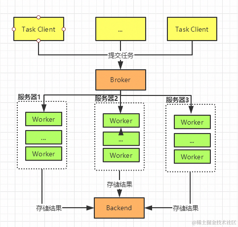 - 如果是异步任务,worker会立即从队列中取出任务并执行,执行结果保存在Backend中
