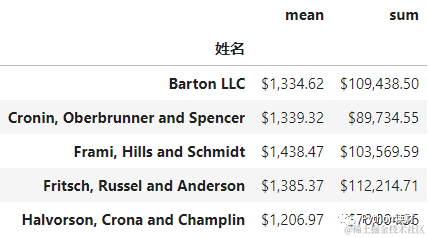 (data.groupby(['姓名'])['金额'].agg(['mean','sum'])