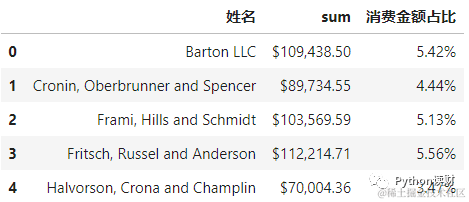 又或求每位顾客的总消费金额(保留2位小数)及其对应的占比情况(以百分数形式展现)