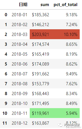 format_dict = {'sum':'${0:,.0f}', '日期': '{:%Y-%m}', 'pct_of_total': '{:.2%}'}