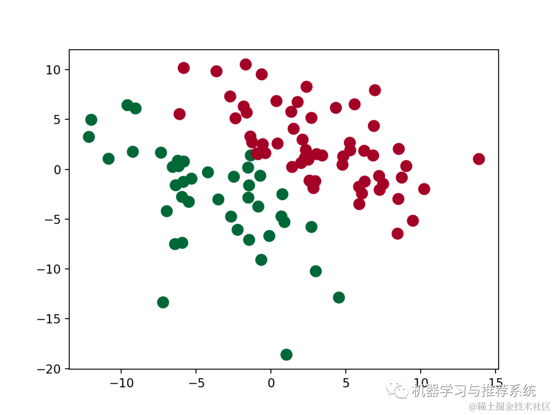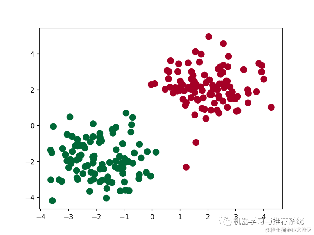 1,自定义生成一个训练集,具体为在二维平面上的一些点,分为两类;