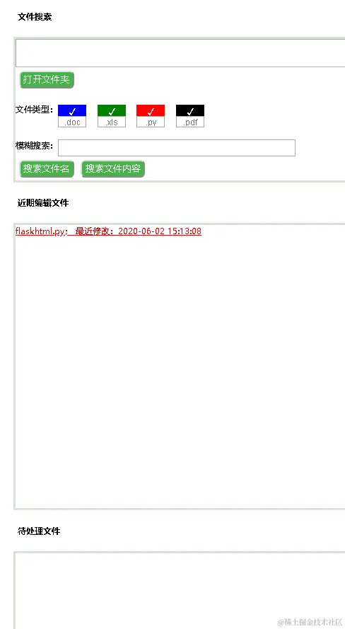 (三)在html中增加其他功能的按钮,使其能和本地python程序交互。例如根据文件夹路径打开文件夹;根据搜索的关键词,查找本地文件夹名字或者文件内容。