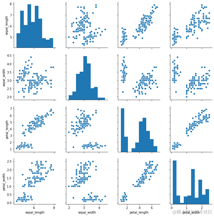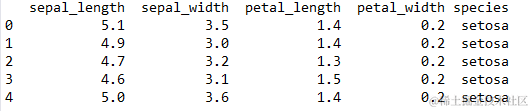 首先是数据集,本文用的数据来自绘图库seaborn自带的数据,是非常著名的鸢尾花的数据,获取方式非常简单,执行下面代码即可。这里有一个问题要提示一下,部分人在load_dataset时会出错,无法读取数据,是因为iris这个数据集不存在,这可能是因为seaborn版本的问题,如果遇到这种情况,可以去seaborn的GitHub数据网站自行下载数据,网址是https://github.com/mwaskom/seaborn-data,把下载的数据解压到seaborn-data文件夹即可,这个文件夹一般在seaborn安装目录下或者是当前工作目录下。