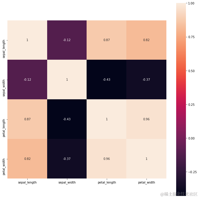 刚开始写这段代码时还出现了一个小问题,如图9所示。图9当中第一行和最后一行的子图只显示了一部分,而其他子图都是完整显示,这是matplotlib的一个bug,因为seaborn是基于matplotlib的库,所以只要升级matplotlib就行了,刚开始笔者的matplotlib版本是3.1.1,现在已升级到3.2.2,这个bug已经被修复。正常图如图10所示。第二行代码中square=True表示每个子图是否以正方形显示,这里设置为True,annot=True则表示是否在图中显示每个子图的数值,这里同样设置为True。