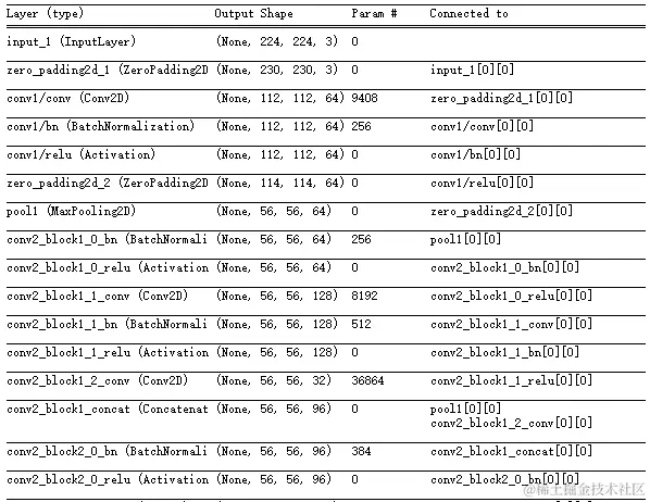对于densenet169, 我们可以选择每个dense_block层的最后一个concat,也可以选择transition_block pooling前面的卷积层做展示,当然每一个卷积层都是可以做展示的,卷积层名称可以在summary()可以查到。本文 conv1/relu ,pool2_conv,pool3_conv,pool4_conv和最后的conv5_block32_concat