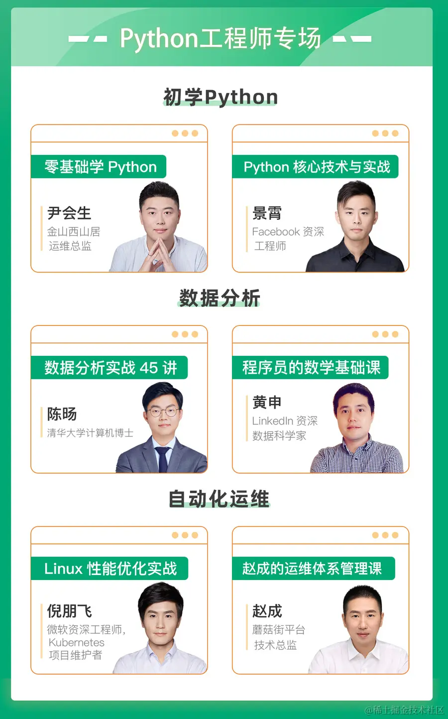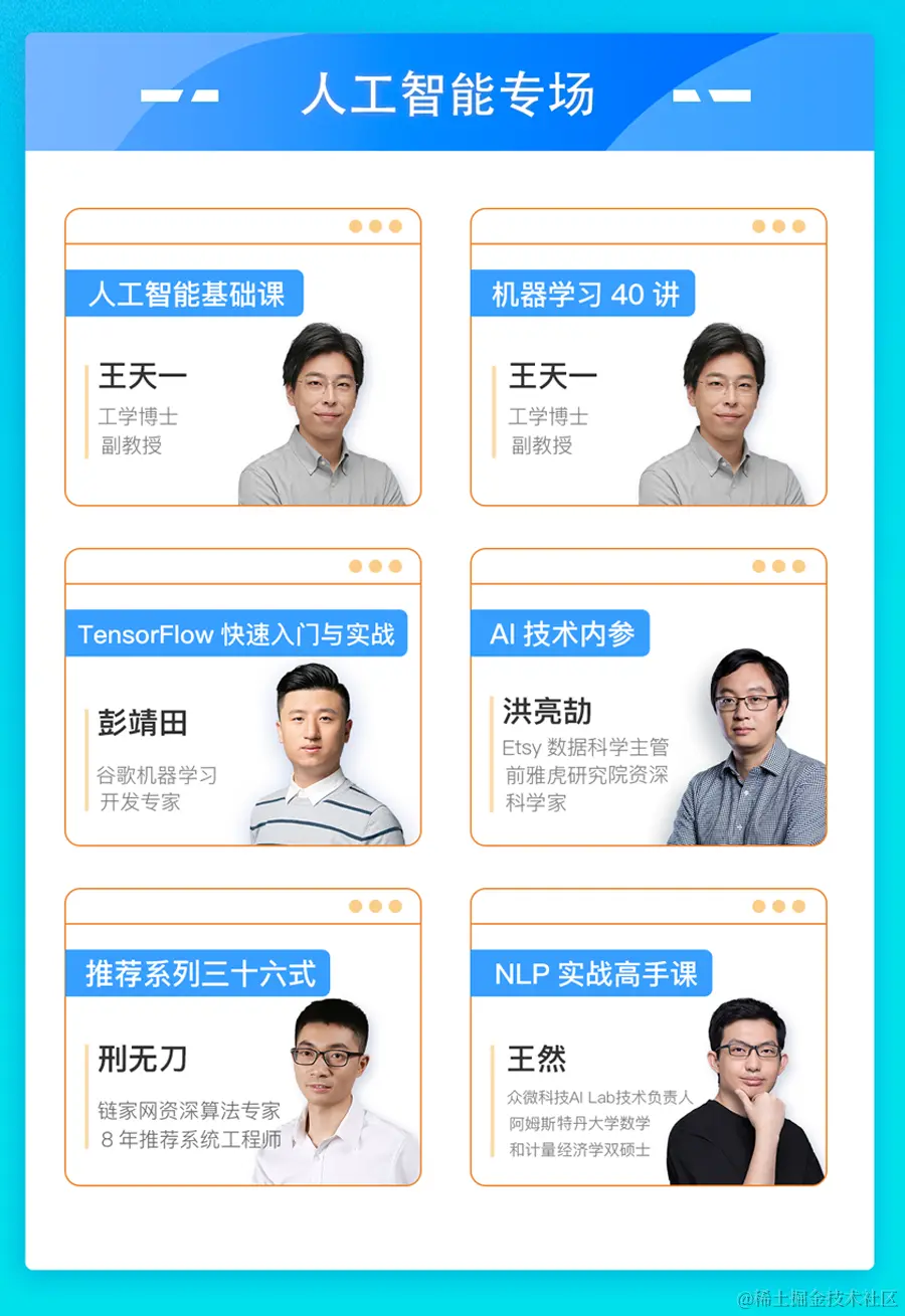 企业学习福利****除上述Python和人工智能系列课程外,极客时间全部课程均面向企业免费开放,内容涵盖移动、前端、后端、架构、运维、编程语言、测试、大数据、云原生, 研发团队的成员都能找到适合自己学习的实战课程。????