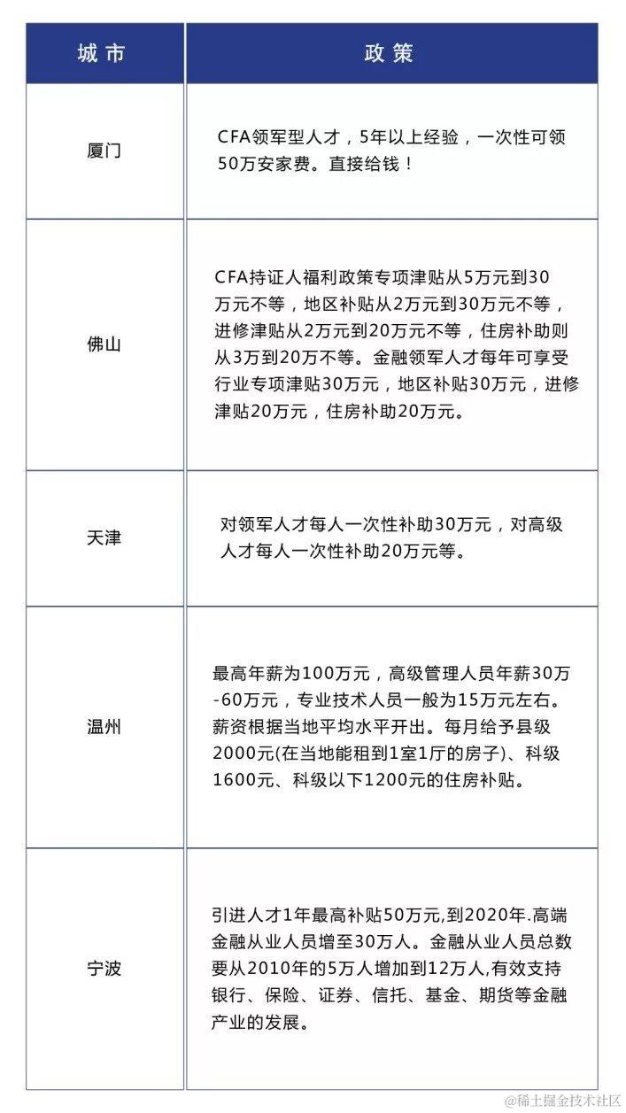 这已经不是CFA人才第一次被“疯抢”了,**补贴、赠房、落户... **各地政府为了争夺CFA持证人可以说不遗余力,各显神通: