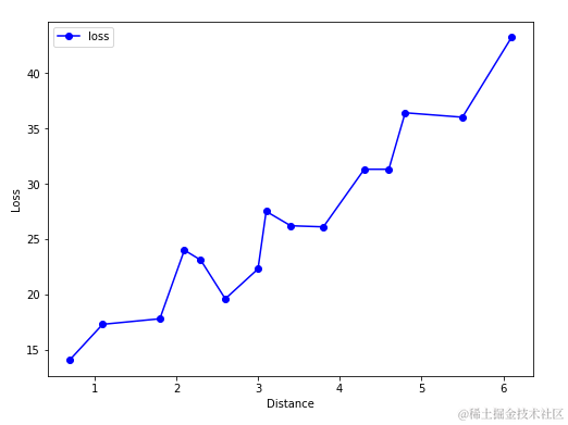 结果如图7所示。从图中我们可以看到,Prob (F-statistic)的值为1.25e-08,这个值非常小,说明我们的一元线性回归模型是正确的,也就是loss和distance的线性关系是显著的。而图中还可以看到Skew=-0.003,说明这部分数据非常接近正态分布,而Kurtosis=1.706,说明我们的数据比正态分布更陡峭,是一个尖峰。此外,从图中还可以看到Omnibus=2.551,Prob(Omnibus)=0.279,Jarque-Bera (JB)=1.047,Prob(JB)=0.592,这里我们很难直接从Omnibus和Jarque-Bera的数值来判断是否支持前面的备择假设,但我们可以从Prob(Omnibus)和Prob(JB)这两个数值来判断,因为这两个数值都比较大,那么我们就无法拒绝前面的原假设,即H0是正确的,说明我们的数据是服从正态分布的。