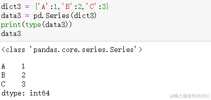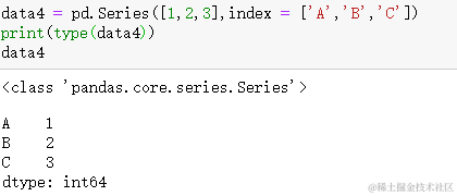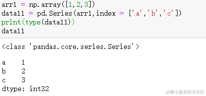 Series 可以当成 DataFrame 中一个元素,一列索引对应一列值。