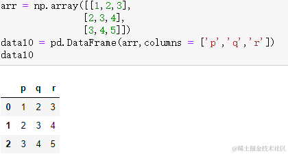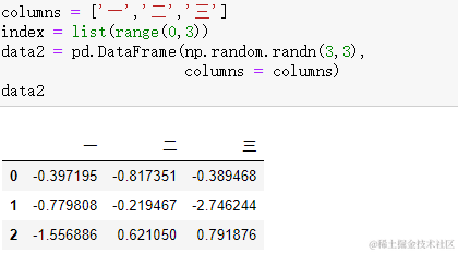 原理与通过字典创建一致,但需要注意行、列索引需要自己指定。