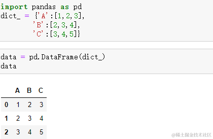 DataFrame创建方法很多,这里给出比较常用的三种方法: