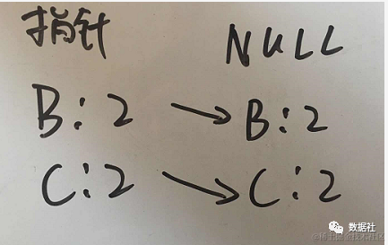 对元素 C,获得前缀路径{B:2},则将前缀路径创建成条件 FP 树,如下图 所示。