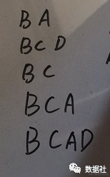 itemsets = [['A','B'], ['B','C','D'],['B','C'],['A','B','C'],['A','B','C','D']]