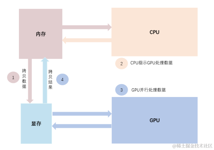 - CPU负责加载数据+数据预处理,并不断的在内存和显存之间交互数据
