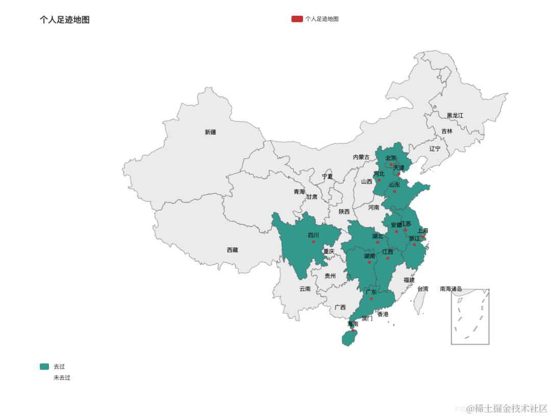 全国范围的足迹地图效果图如下:\
