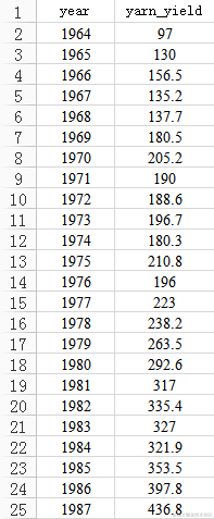 图2. 纱产量部分数据截图