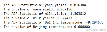 print('The ADF Statistic of yarn yield: %f' % yarn_result[0])