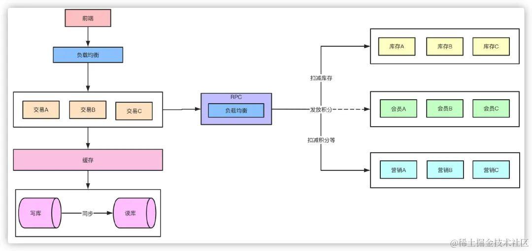 对于一些不需要同步执行的接口,可以通过引入消息队列的方式异步执行以提高接口响应时间。在交易完成之后需要扣库存,然后可能需要给会员发放积分,本质上,发积分的动作应该属于履约服务,对实时性的要求也不高,我们只要保证最终一致性也就是能履约成功就行了。对于这种同类性质的请求就可以走MQ异步,也就提高了系统抗压能力了。