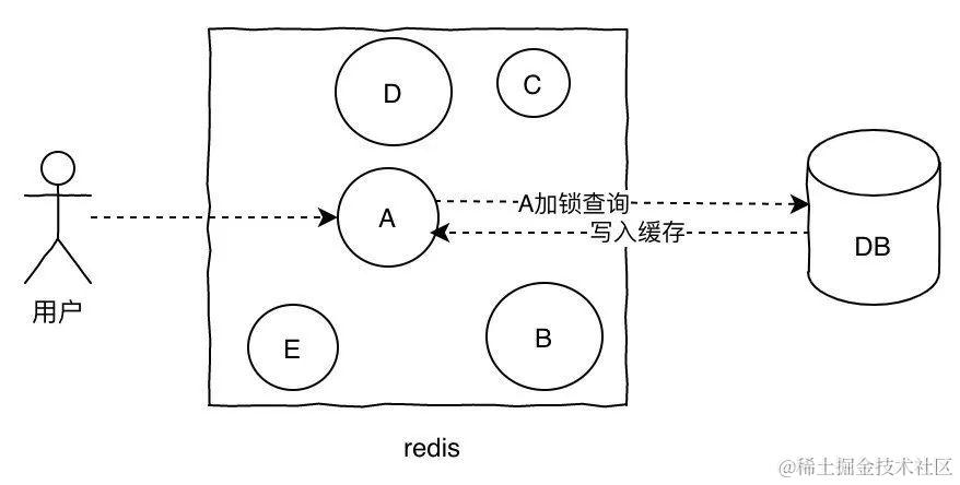 - 加锁更新,比如请求查询A,发现缓存中没有,对A这个key加锁,同时去数据库查询数据,写入缓存,再返回给用户,这样后面的请求就可以从缓存中拿到数据了。