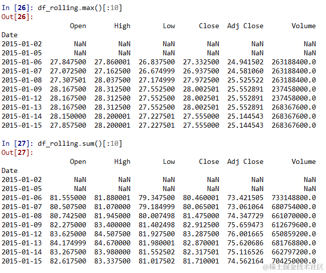 这里df_rolling可以看作是一个中间变量,就和我们进行过groupby之后形成的变量一样,然后再在其基础上进行操作。比如我们进行max和sum操作,得到的结果就如图2所示。