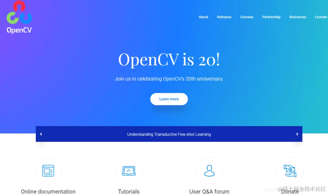 OpenCV官网是https://opencv.org/,首页截图如下所示: