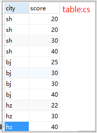 WHERE c.city=cs.city AND c.score<cs.score )<2