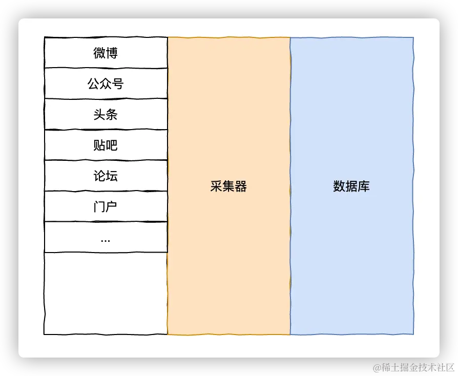 舆情其实就是舆论情况,要掌握舆情,那么就必须掌握足够多的内容资讯。除了一些开放了商业接口的大型内容/社交类平台(例如微博)之外,其他都需要依靠爬虫去采集。因此,舆情方向的爬虫工程师需要面对的是千千万万个内容和结构都不同的站点。我们用一个图来表示他们面对的问题: