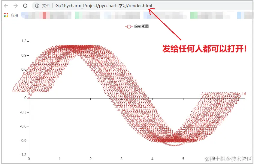 .render()默认将会在当前工作目录下生成一个 render.html 的文件,支持path参数,进行自定义文件保存位置,最终文件你可以可以发送给任何人,直接用浏览器打开,交互效果仍然存在。- Jupyter Notebook中直接调用