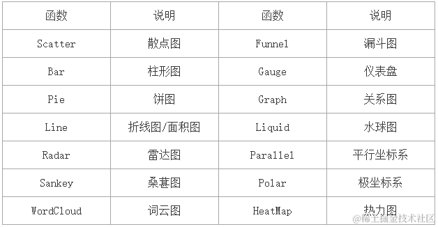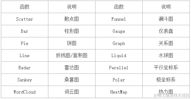- from pyecharts.charts import 函数名