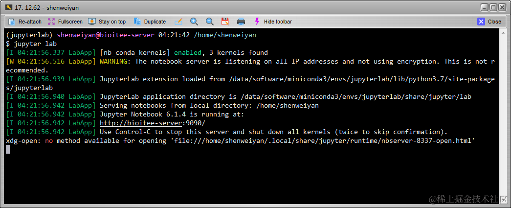 接下来输入jupyter lab 就可以启动 jupyter-lab 服务啦!\
