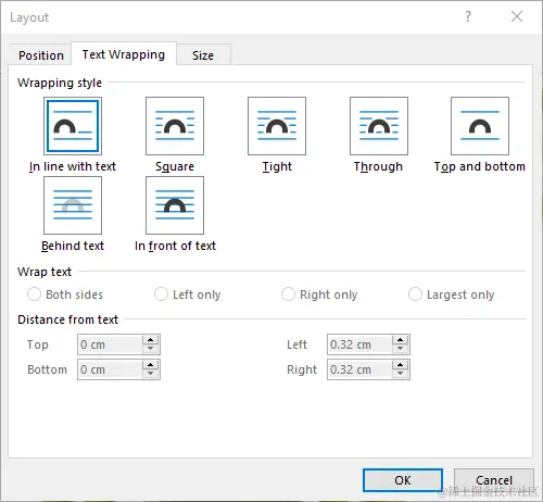 | 环绕型 | 否 | 是 | Square, Tight, Through, Top and bottom |