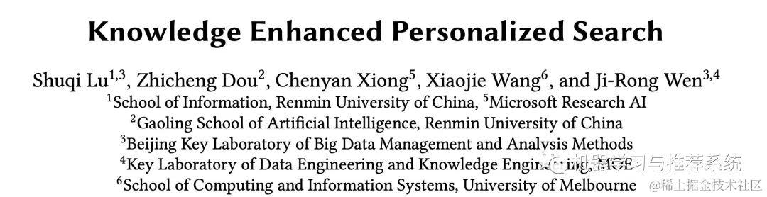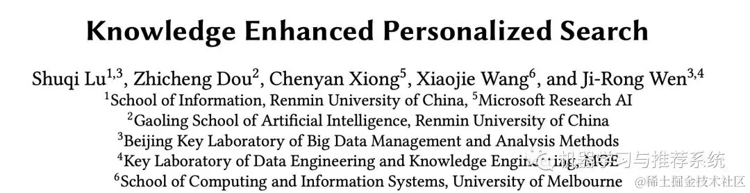 今天给大家分享一篇 SIGIR 2020 的文章:KEPS,用图谱来辅助优化个性化搜索。整篇文章首先充满学术风,充分且完备的设计了模型和实验,其次很多思路也可以在工业界中进行借鉴。一开始我只是大概扫了一下作者列表,看的过程中就觉得应该是学术界和工业界合作的一篇文章,果然是人大和微软都有署名~