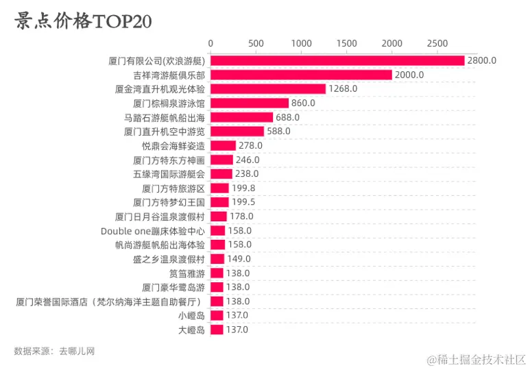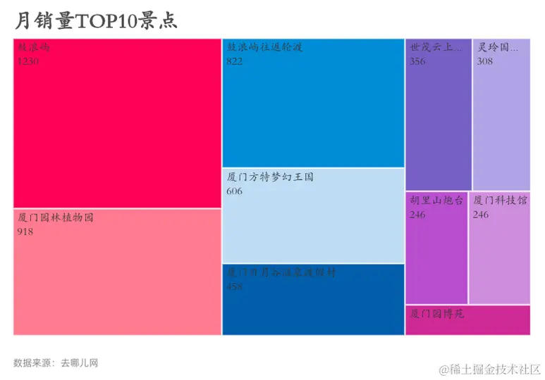 元旦马上就要到了,难得的3天小长假,玩肯定是要去玩的,但去哪儿玩是个问题。于是,笔者以旅游热门城市厦门为例,用Python获取了去哪儿网的相关景点数据,包括景点名称、地区、评分、销量、价格、坐标等字段,对数据进行可视化并作简单分析,以求找到性价比较高的景点。
