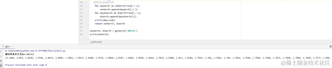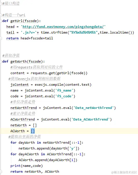 第四步:上代码,爬取净值,测试,看与网站数据是否一致。