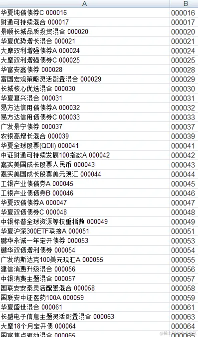 可以直接获取到所有的基金代码,再通过基金代码可以遍历爬取所有基金的数据,将下载的数据存成了csv,方便excel打开或用代码读取。