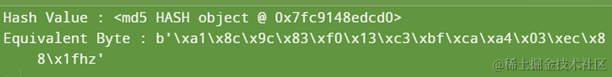示例1:在Python中打印等效于MD5哈希的字节