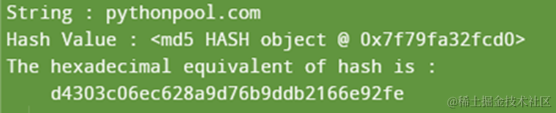 示例4:使用Python在MD5中编码字符串- 输出与说明