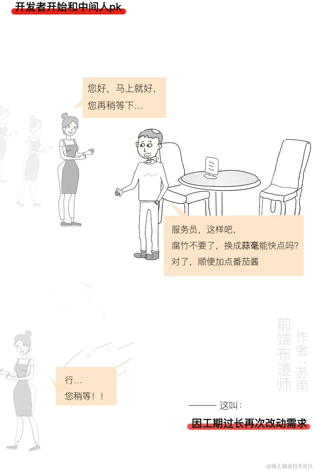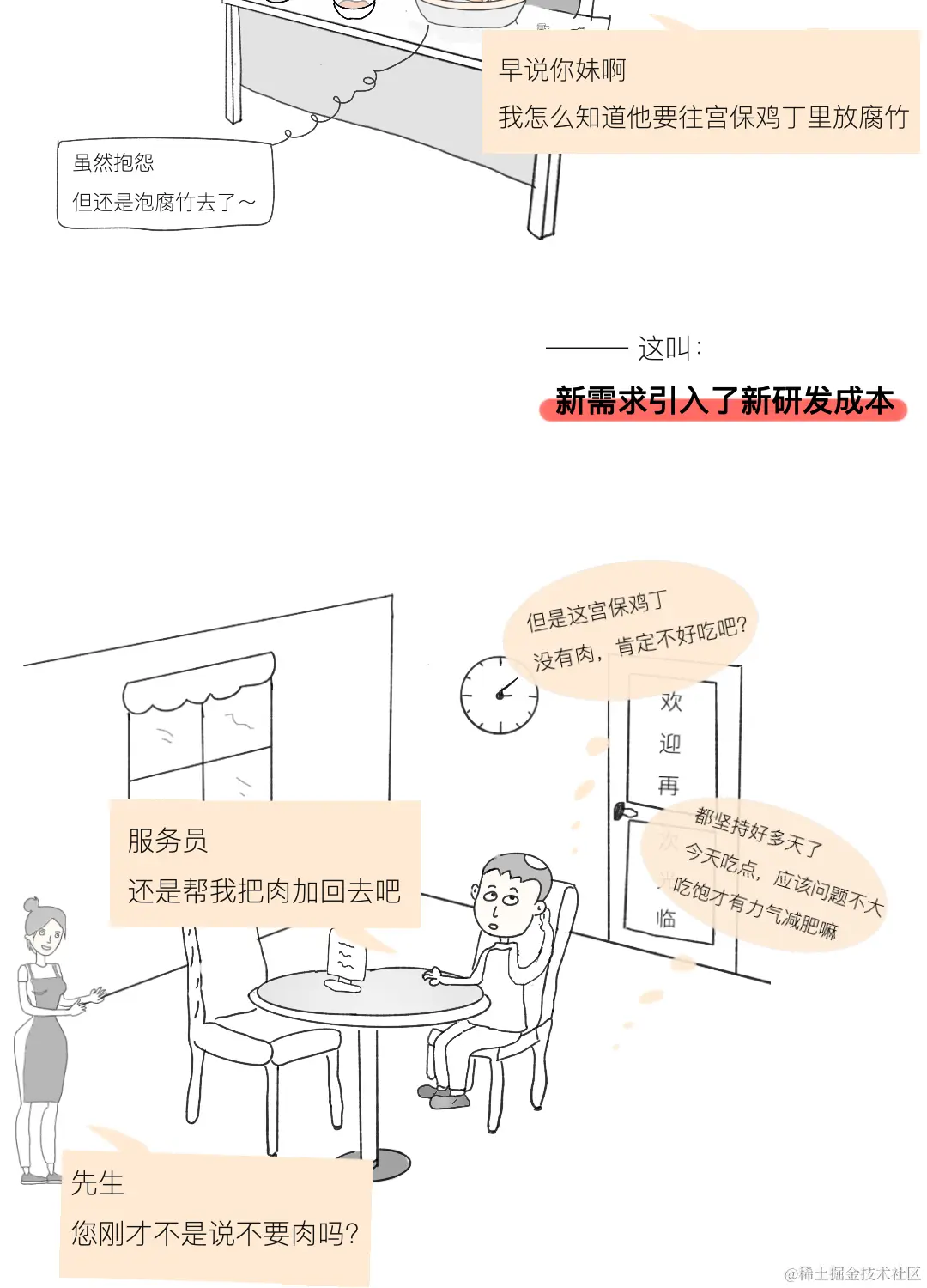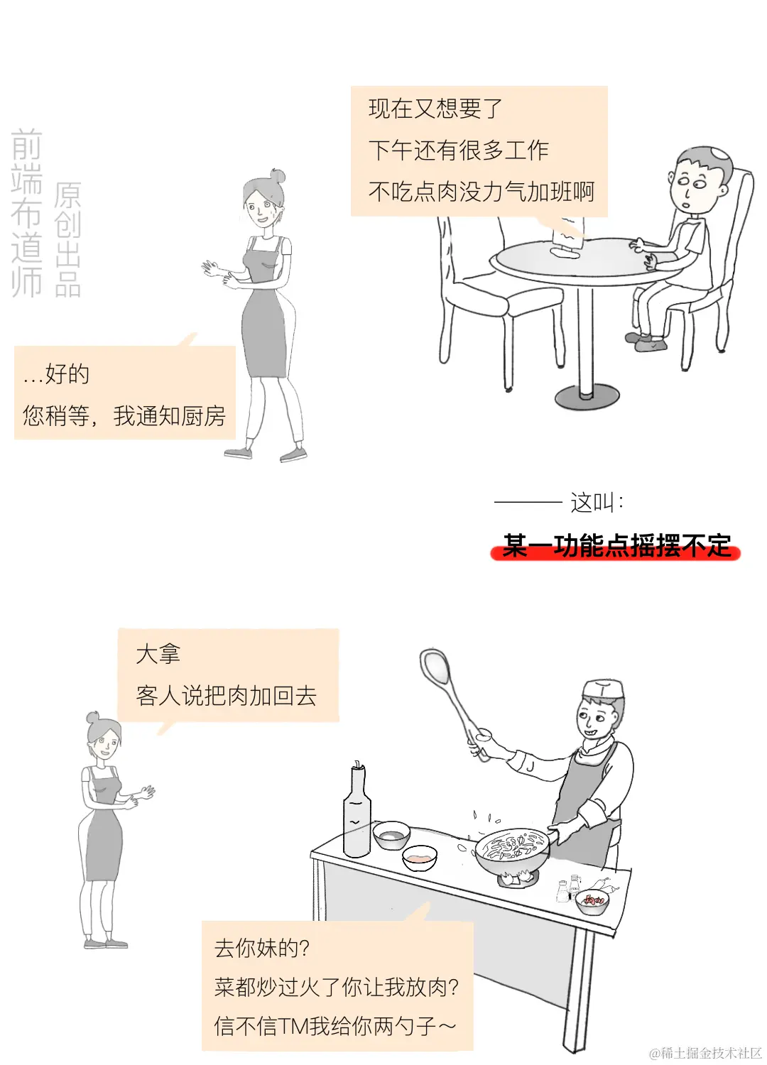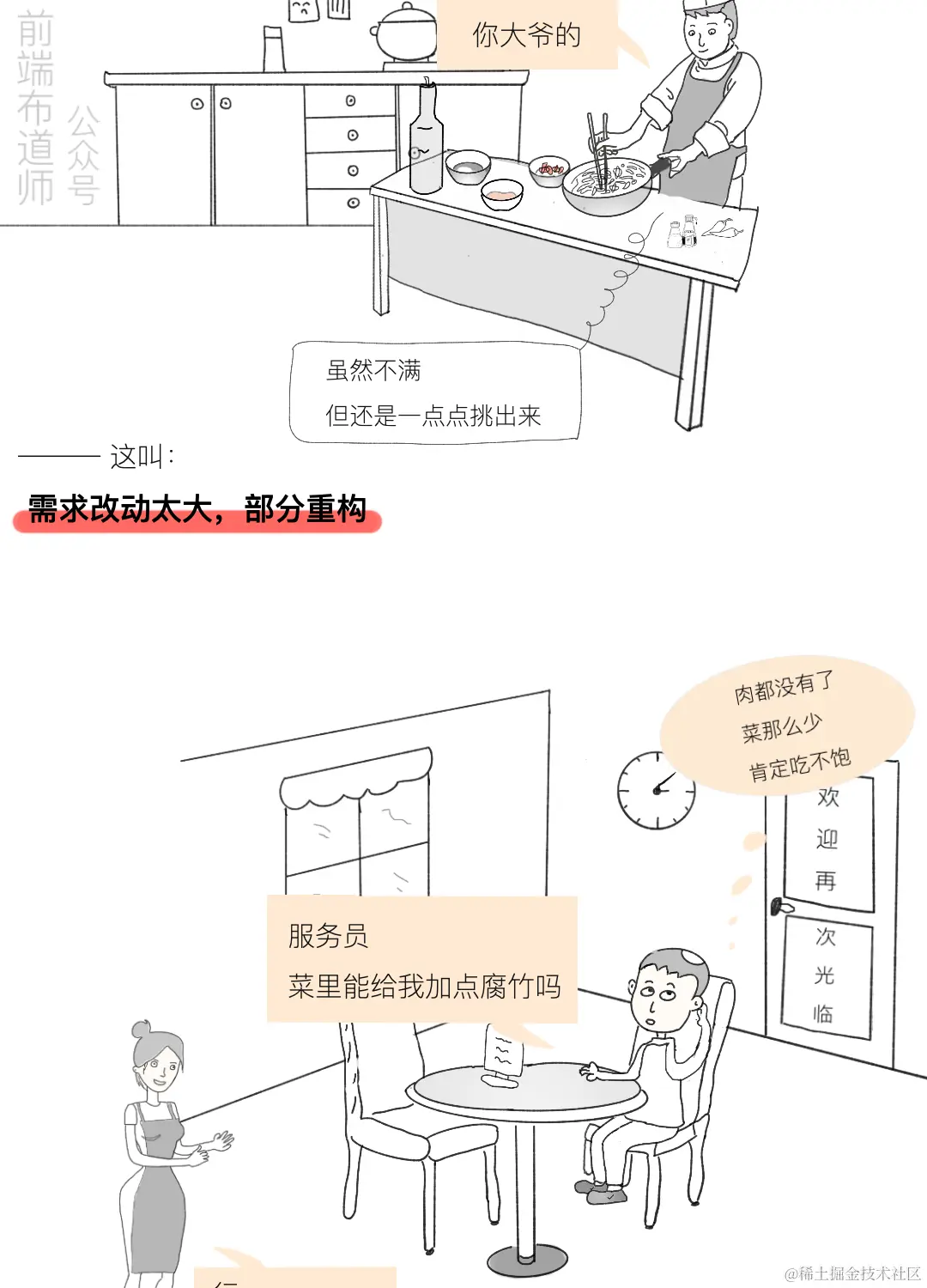 今天这篇漫画用一个日常生活中很常见的例子来讲述产品经理频繁更改需求,为什么会令程序员烦恼的故事,一起来看看吧,是否有戳中你的泪点?