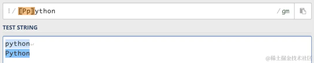本篇文章的实例都在该网站上在线验证:regex101.com/ (1)集合([ ]) [ ]表示匹配所包含的任意一个字符,例如[Pp]ython,就能匹配Python和python。