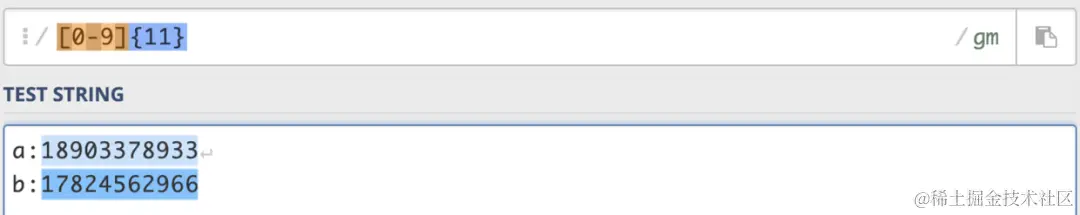 例如,匹配11个字符的电话号码。