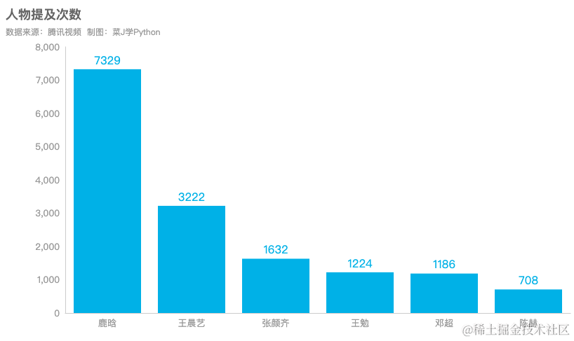.set_global_opts(title_opts=opts.TitleOpts(title="人物提及次数",subtitle="数据来源:腾讯视频 \t制图:菜J学Python",pos_left = 'left'),
