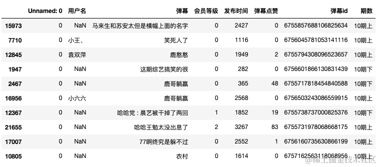 df = df.rename(columns={'用户名':'用户昵称','弹幕':'弹幕内容','发布时间':'发送时间','评论点赞':'弹幕点赞','期数':'所属期数'})