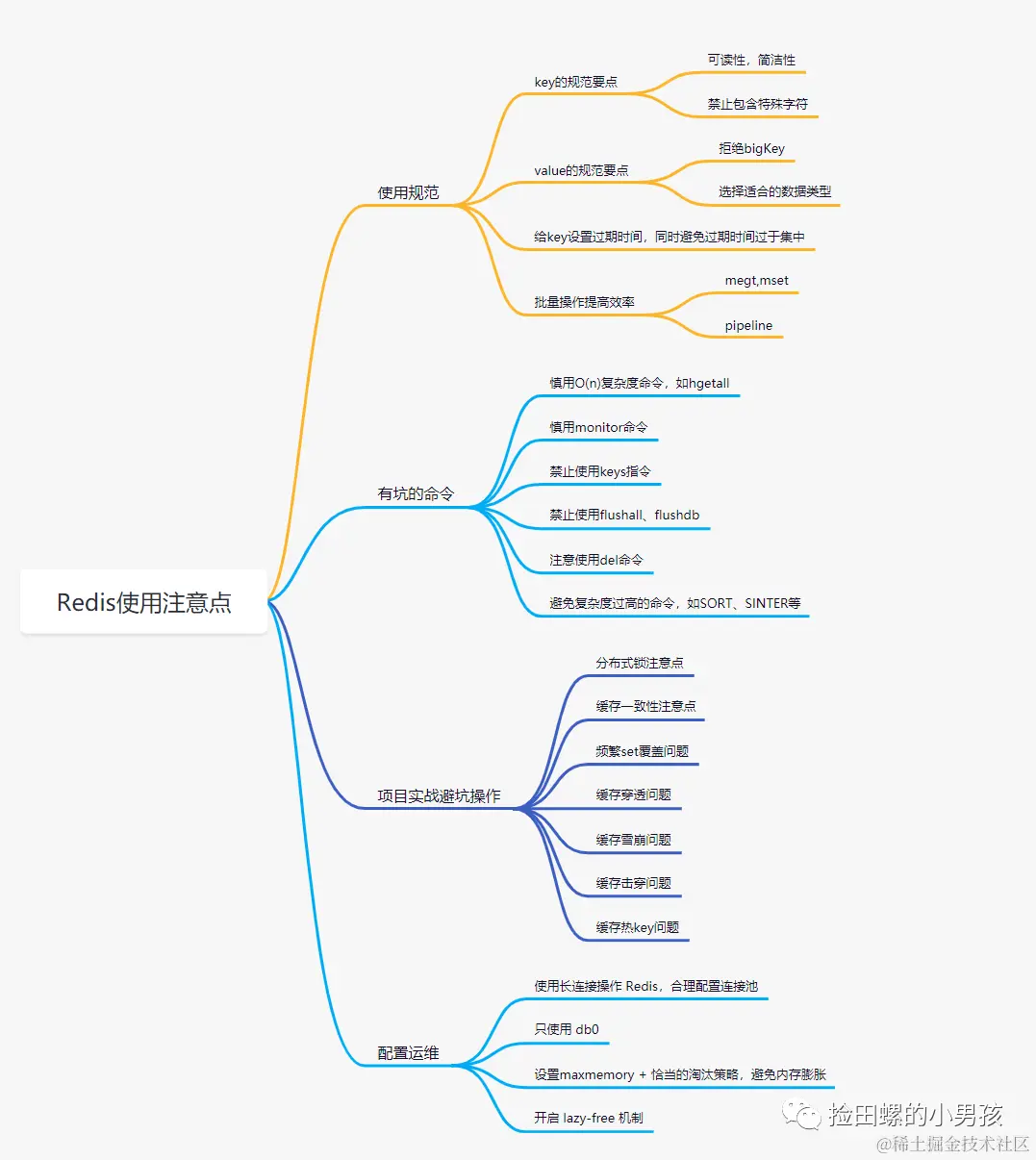 最近在学习Redis相关知识,看了阿里的redis开发规范,以及Redis开发与运维这本书。分使用规范、有坑的命令、项目实战操作、运维配置四个方向,整理了使用Redis的21个注意点,希望对大家有帮助,一起学习哈!