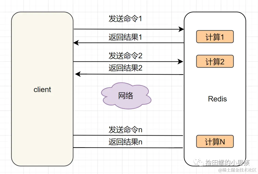 我们先来看下没有使用Pipeline执行了n条命令的模型: