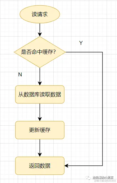 先来看一个常见的缓存使用方式:读请求来了,先查下缓存,缓存有值命中,就直接返回;缓存没命中,就去查数据库,然后把数据库的值更新到缓存,再返回。