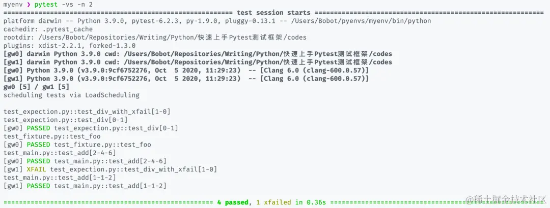因此通过 pytest-xdist 我们就能大大加快每轮测试的速度。当然我们只需要在启动 pytest 测试时加上 -n <CPU_NUMBER> 参数即可,其中的 CPU 数量可以直接用 auto 代替,它会自动帮你调整 pytest 测试所使用的 CPU 核心数: