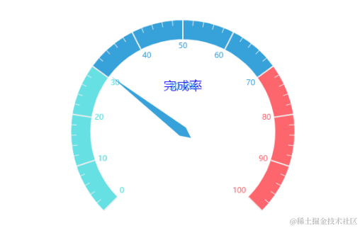 from pyecharts import options as opts from pyecharts.charts import Gauge c = ( Gauge() .add("", [("完成率", 30.6)], radius="70%", axisline_opts=opts.AxisLineOpts( linestyle_opts=opts.LineStyleOpts( color=[(0.3, "#67e0e3"), (0.7, "#37a2da"), (1, "#fd666d")], width=30) ), title_label_opts=opts.LabelOpts( font_size=20, color="blue", font_family="Microsoft YaHei" ), ) .set_global_opts(title_opts=opts.TitleOpts(title="Gauge-基本示例"), legend_opts=opts.LegendOpts(is_show=False),) ) c.render_notebook()
