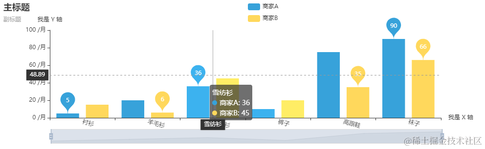 - markpoint/markline: 对图表的特别标记,用于重点说明部分和标注区分线