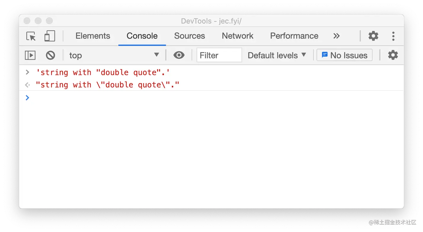 Console 中可以将字符串格式化成合法的 JavaScript 字符串字面量。以前 Console 在输出字符串时,不会将双引号进行解码。